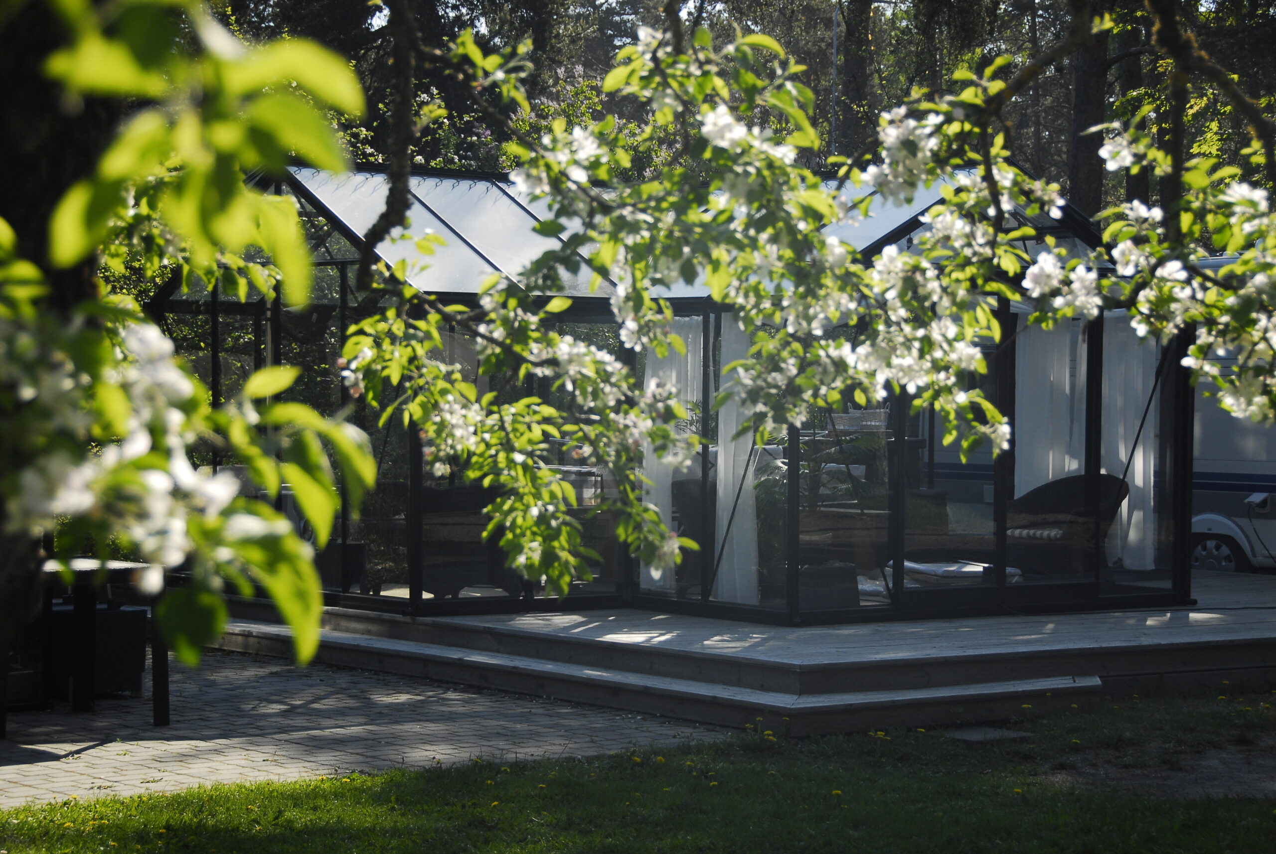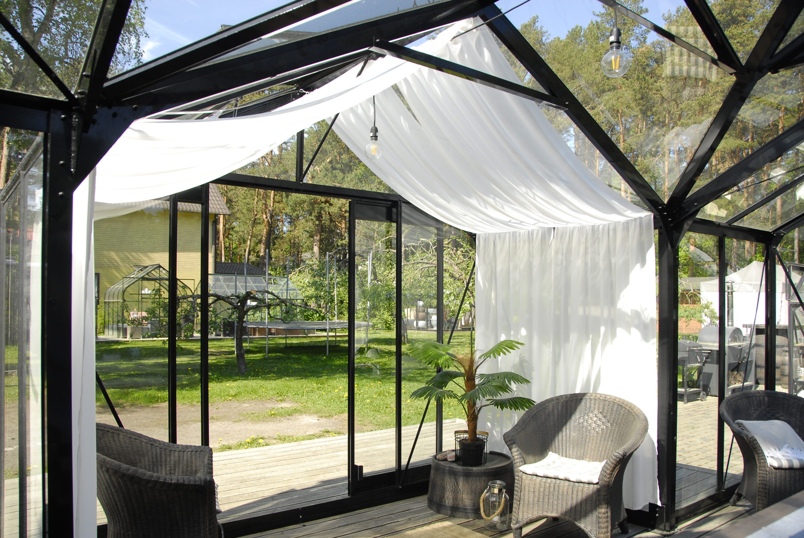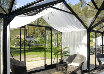 - Mitmekülgne katete valik – saadaval on tavaline aianduslik klaas, turvaline karastatud klaas ja soojapidav polükarbonaat.