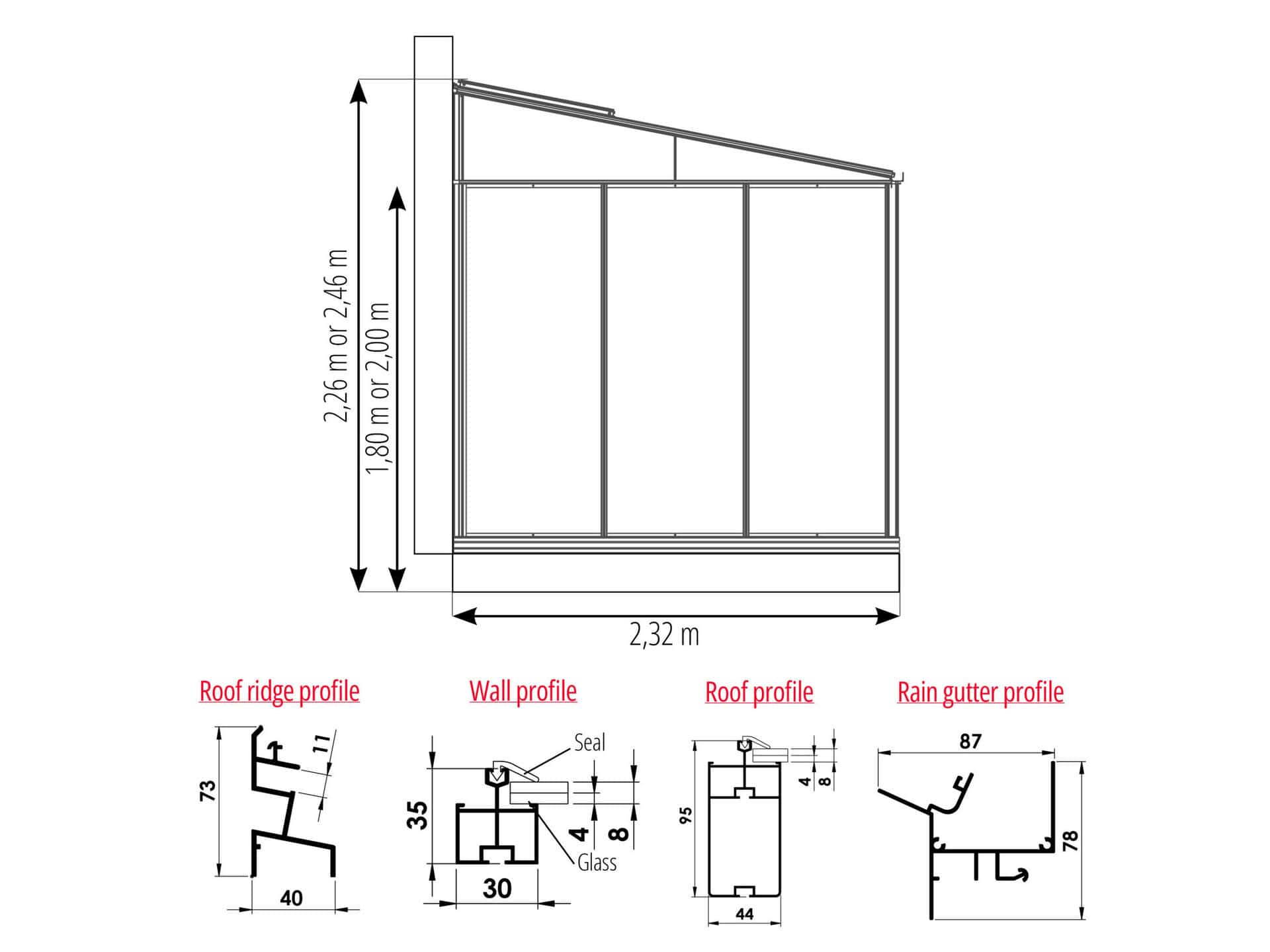 - Klaas: 4 mm karastatud klaas (katusel võimalik ka polükarbonaat valik).